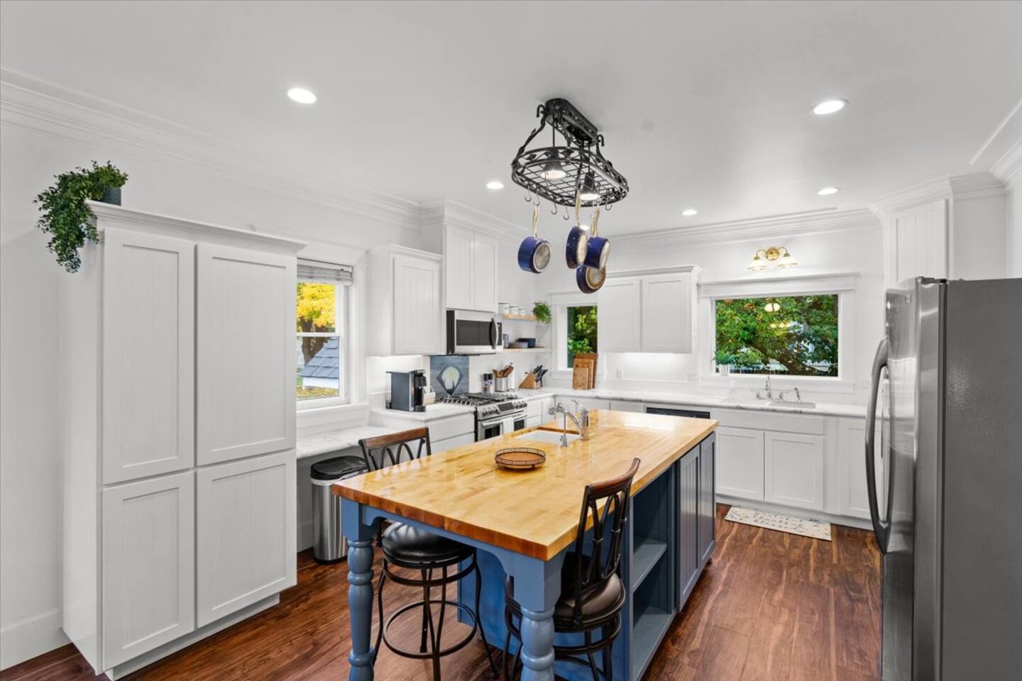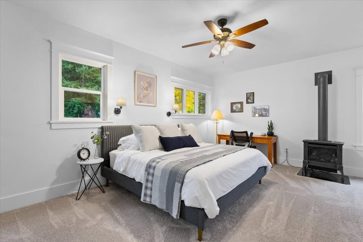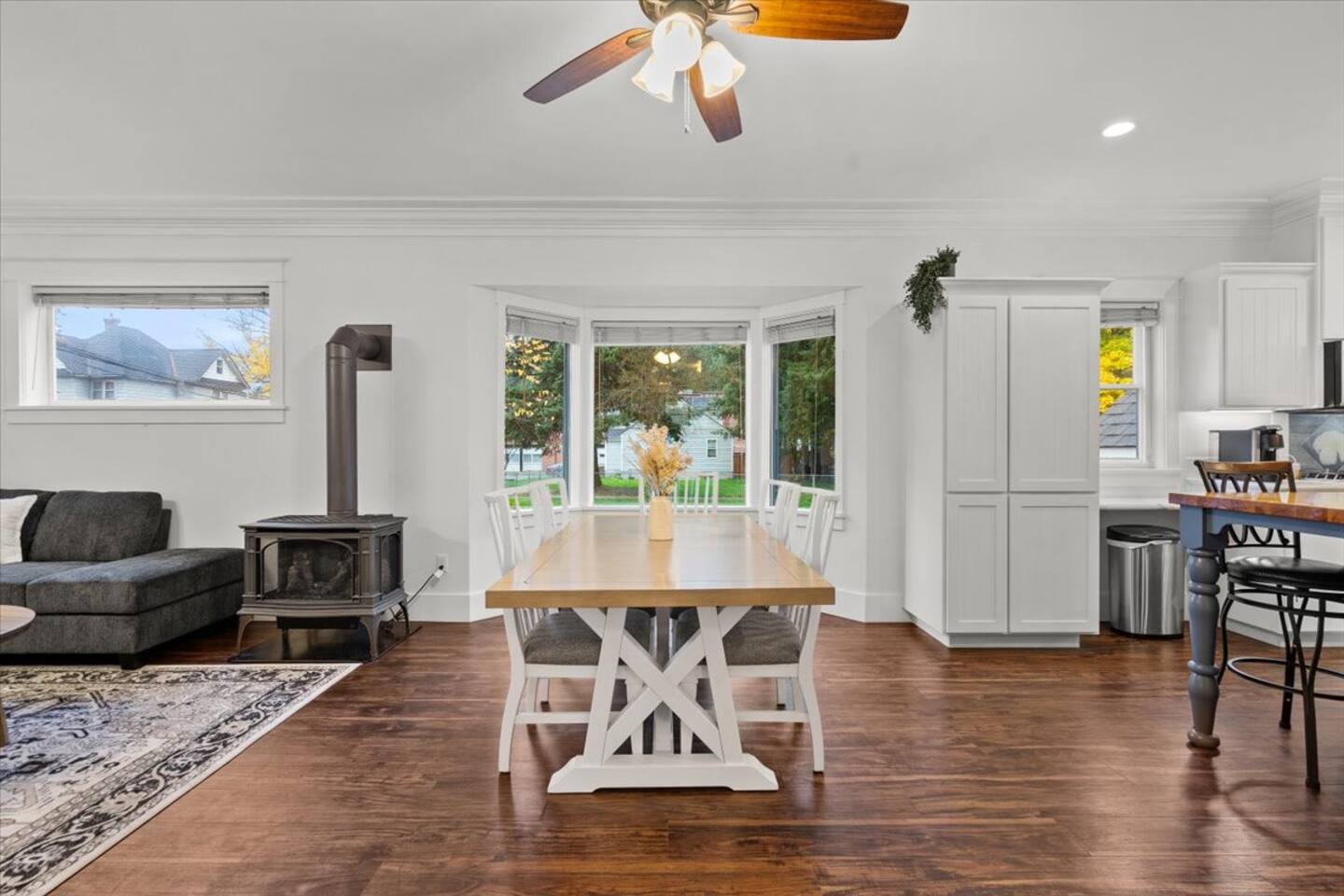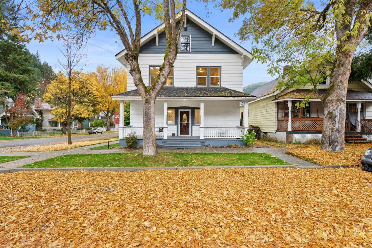 This beautifully renovated home, originally built in 1910, blends timeless charm with modern conveniences. Located just two blocks from historic downtown Wallace, Idaho, it stands as a testament to careful preservation and tasteful updates. The exterior maintains its classic architectural appeal, with well-preserved details hinting at its century-old origins. Stepping inside, the home greets you with 9-foot tall ceilings, amplifying the sense of space and elegance. The original trim, meticulously redone, runs throughout the house, adding a touch of historical authenticity. Upstairs, you'll find three spacious bedrooms, including a luxurious master suite. Each room is bright and welcoming, benefiting from large windows that let in ample natural light. The master suite offers an updated bathroom, complete with a jetted tub, to creating a perfect retreat for relaxation. Downstairs, there is a versatile fourth bedroom that doubles as a cozy TV room or guest suite, with an attached second bathroom for convenience. The kitchen is a modern chef’s dream, featuring new furnishings and appliances while keeping in harmony with the home’s classic feel. A large island with a prep sink provides plenty of space for cooking and entertaining, and the layout is both functional and aesthetically pleasing. The primary heat source comes from two thermostat-controlled gas fireplaces—one in the main living area and another in the master suite. These fireplaces not only provide efficient warmth but also serve as elegant focal points that enhance the home's cozy ambiance. Overall, this home perfectly balances its rich history with thoughtful updates, creating an inviting and functional space within walking distance of Wallace's charming downtown.