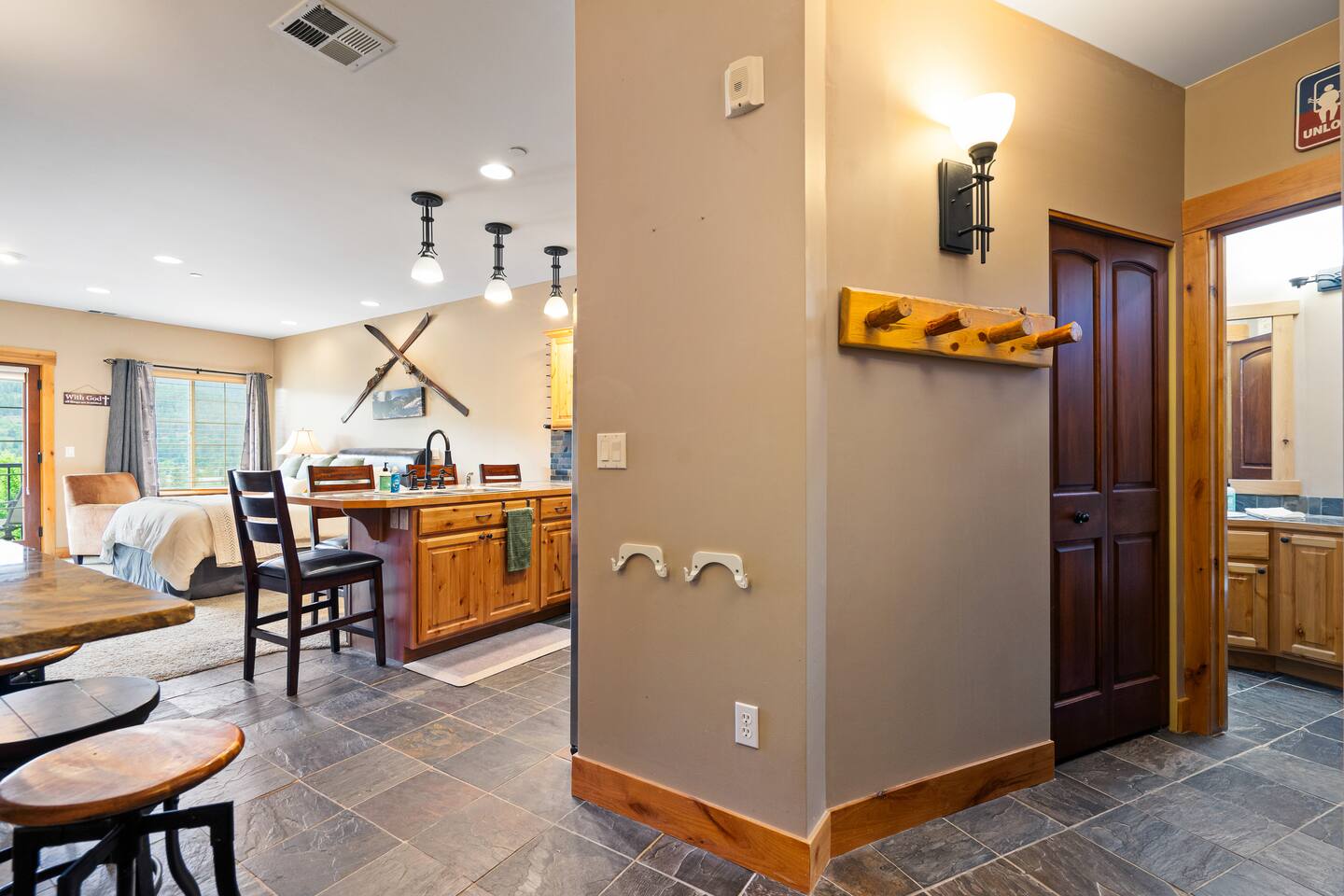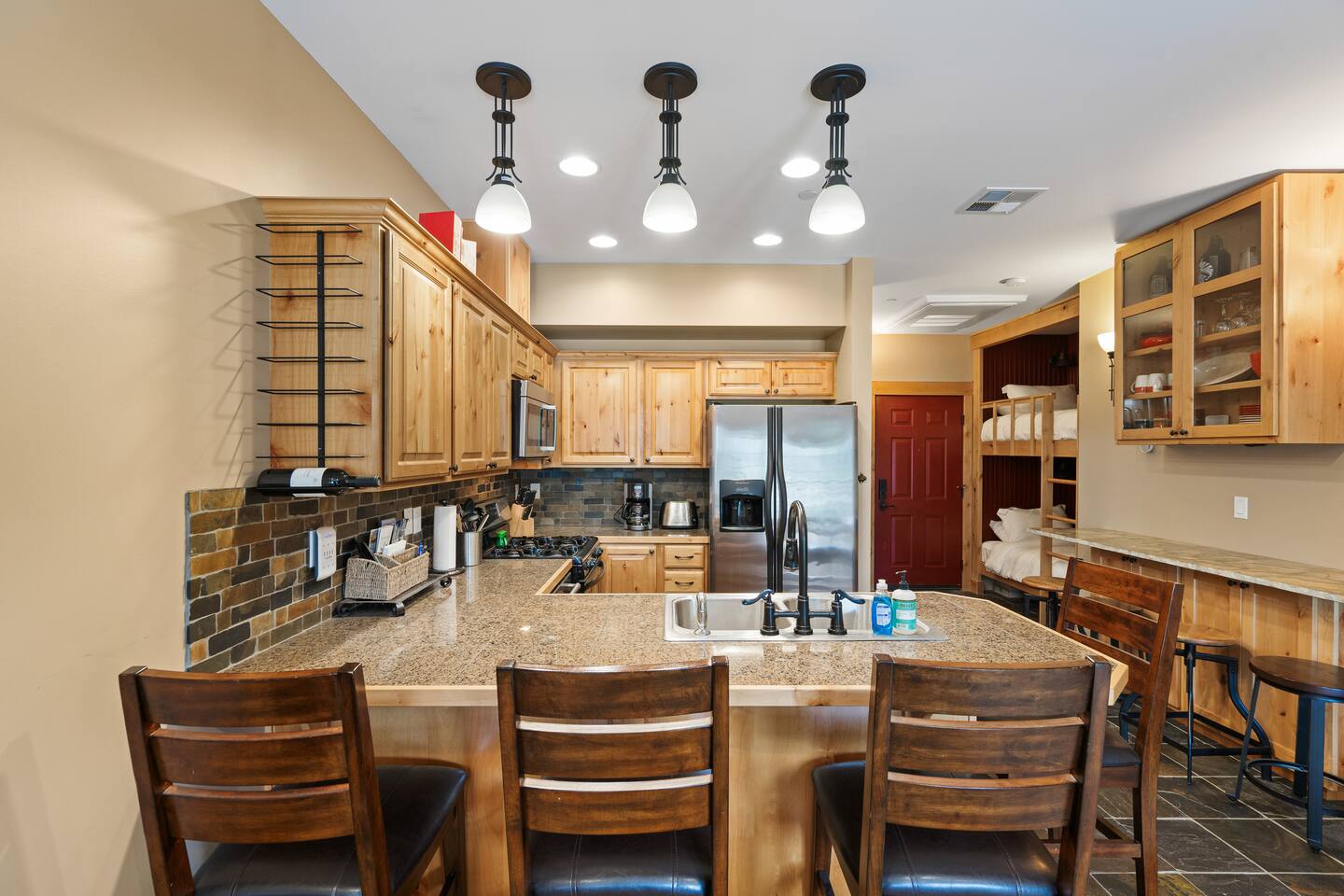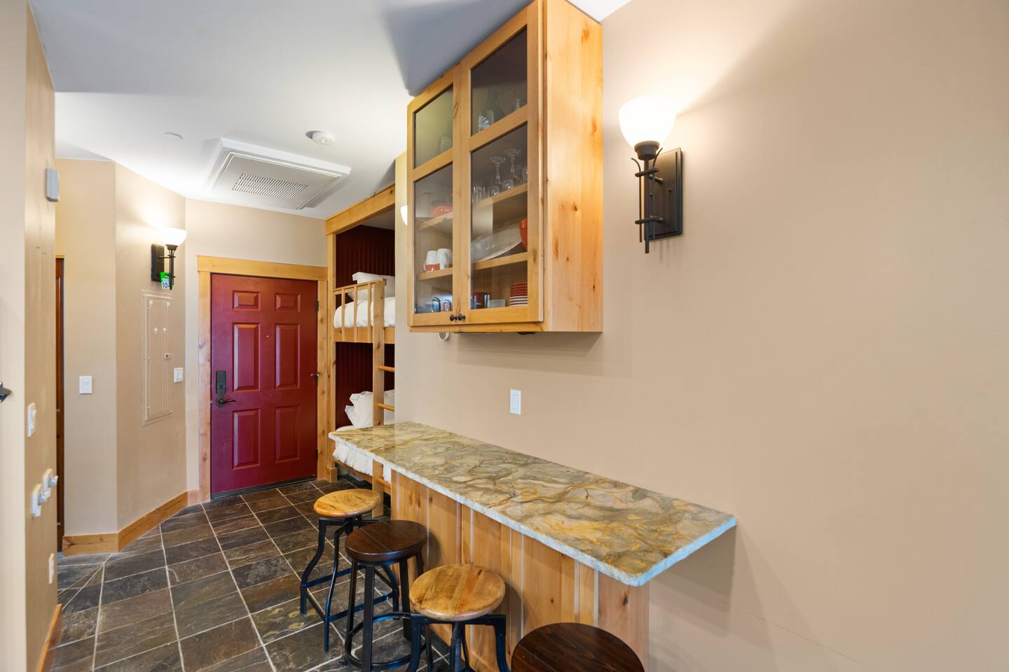 This well-appointed space features a comfortable queen bed, perfect for a restful night's sleep. Additionally, we offer a twin bunk bed, ideal for kids or additional guests, and a convenient pull-out twin bed to accommodate your group. The studio's smart layout ensures ample space for relaxation and socializing, making it a perfect choice for both couples and small families. In addition to the comfortable sleeping arrangements, you'll have access to fantastic shared amenities. Enjoy a relaxing session in the shared sauna, challenge your friends or family to a game of ping pong, or unwind with a round of pool at the billiard table. Our condo provides all the comforts of home with added recreational options to enhance your stay.
