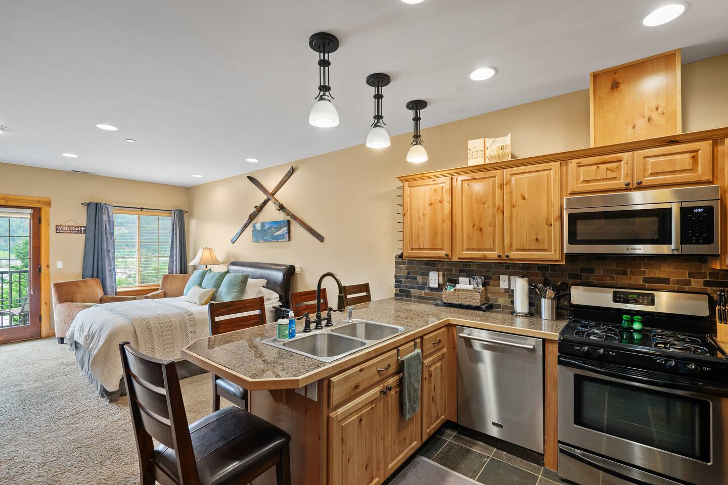 Escape to this cozy studio condo in Kellogg, Idaho! Enjoy breathtaking alpine views and unwind in the buildings shared sauna after a day of adventure. Perfectly located near outdoor activities and local attractions, this charming retreat offers a comfortable bed, a well-equipped full kitchen, and all the essentials for a relaxing stay. Whether you're hitting the slopes or exploring the trails, this condo provides the perfect base for your mountain getaway.