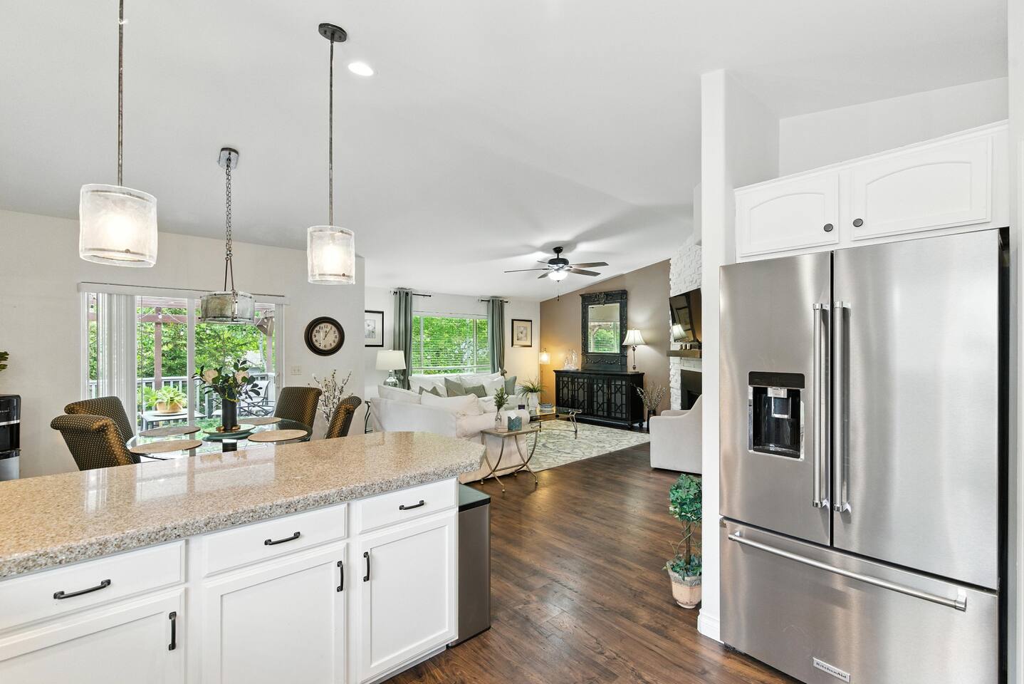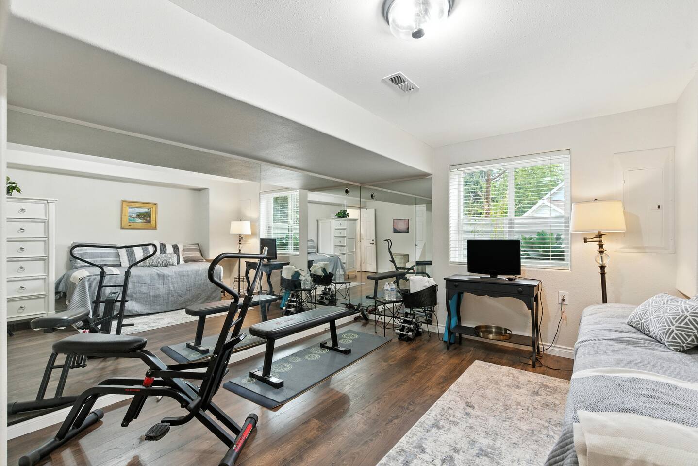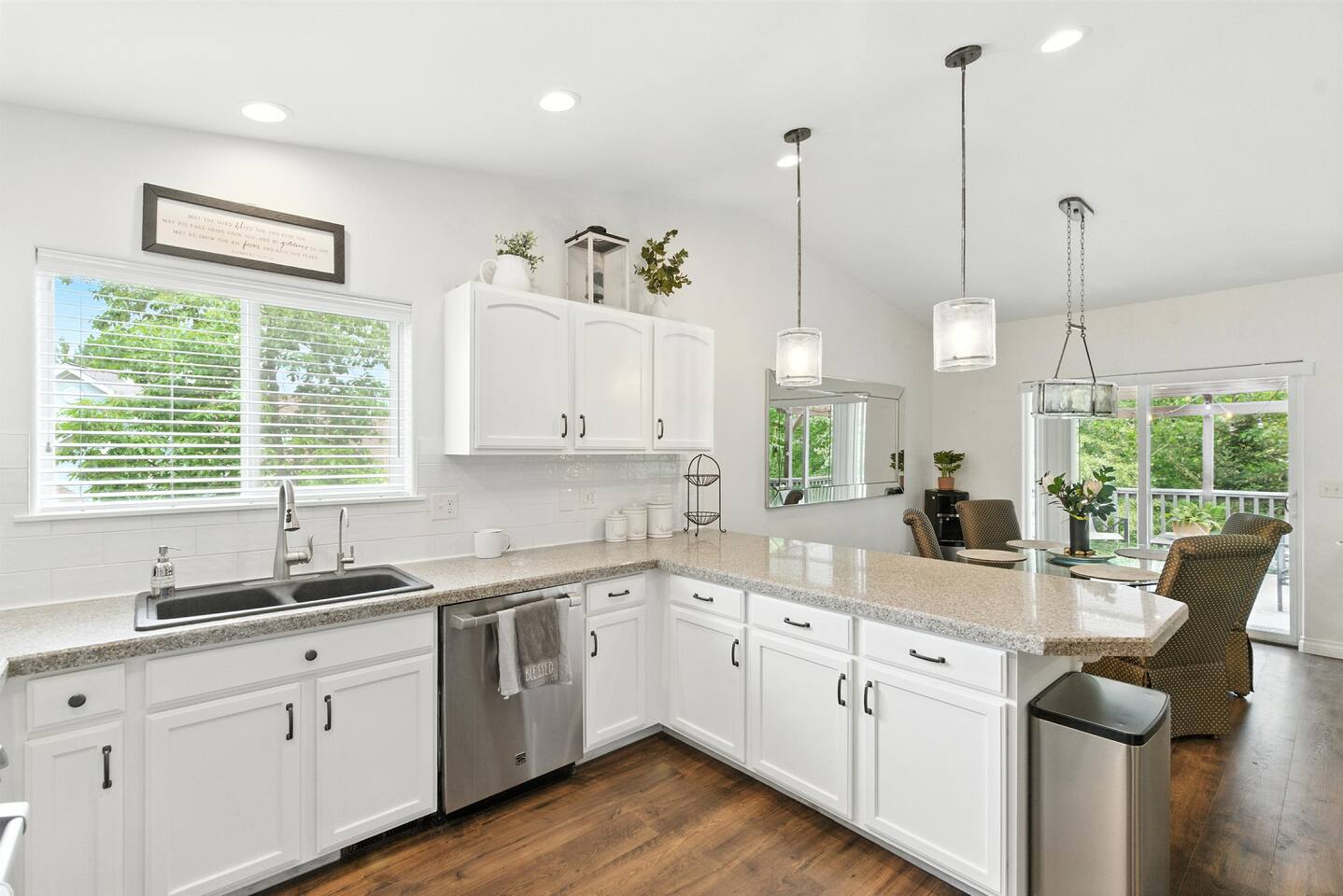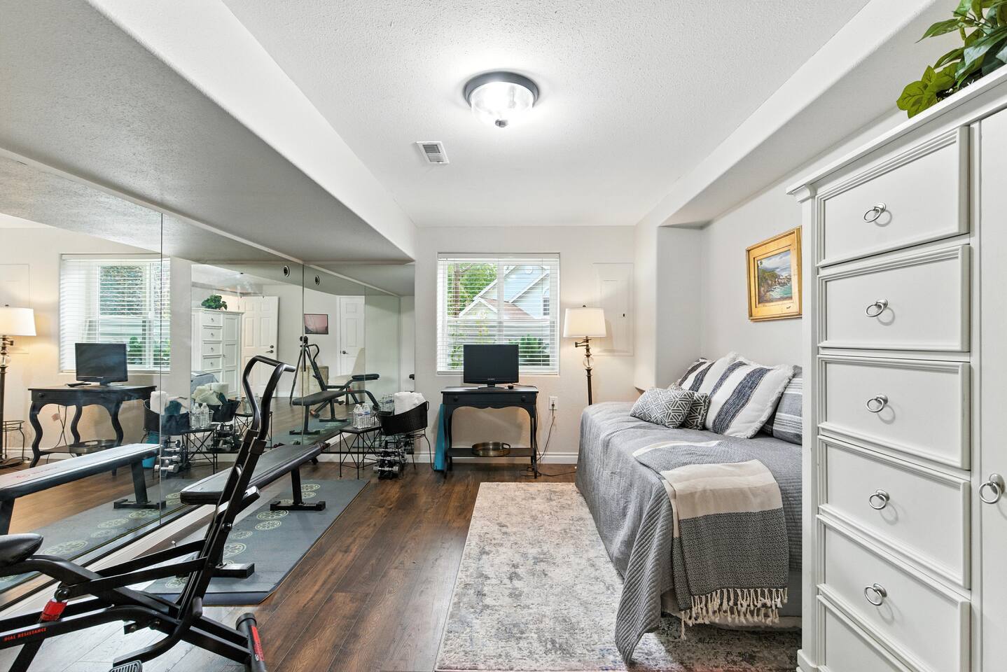 Designed with comfort and ease in mind, every detail is ready for your stay: · 3 bedrooms, thoughtfully styled with quality bedding · 2 bedrooms double as an office/gym · 2 full bathrooms with all the essentials · 1 half bathroom off the main living area · A chef’s kitchen, stocked for everything from morning coffee to full family meals · Open-concept living + dining space with plenty of natural light · Fenced backyard with patio seating, grill, and space to unwind The Bedrooms Each bedroom offers cozy touches, natural light, and restful vibes: · Primary Suite – King bed, en suite bathroom · Second & Third Room – Queen bed with soft linens and ample storage · Fourth Bedroom – Twin Bed, Daybed Style, with small gym · Fifth Bedroom – Full size murphy bed, full size desk with french doors to the front porch Location Perks Tucked into the hillside but still convenient to everything: · 8 minutes to downtown Coeur d’Alene’s shops, dining, and lakefront · Easy access to hiking and biking trails right from the neighborhood · 10 minutes to Tubbs Hill and Sanders Beach · Quick drive to Silverwood Theme Park (25 minutes) ✅ The Perks · Super-stocked kitchen with cookware, bakeware, and spices · Smart TV and fast WiFi · Washer + dryer · Free parking in driveway · Quiet neighborhood for restful nights ⚠️ The “Hey, Just So You Know…” · The home is in a peaceful hillside neighborhood — you’ll need a car to get around · The yard is fully fenced, but not pet-proof for tiny dogs