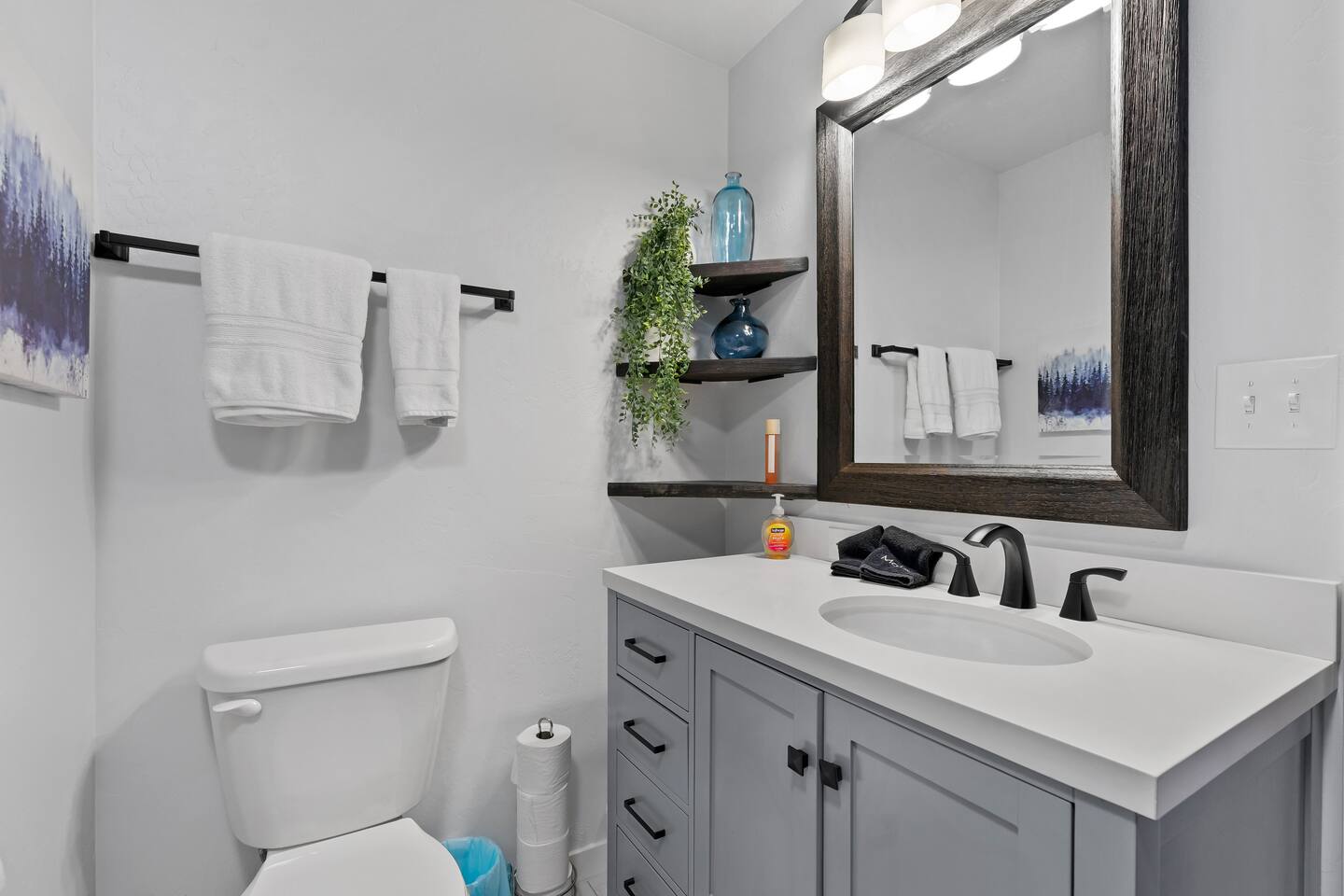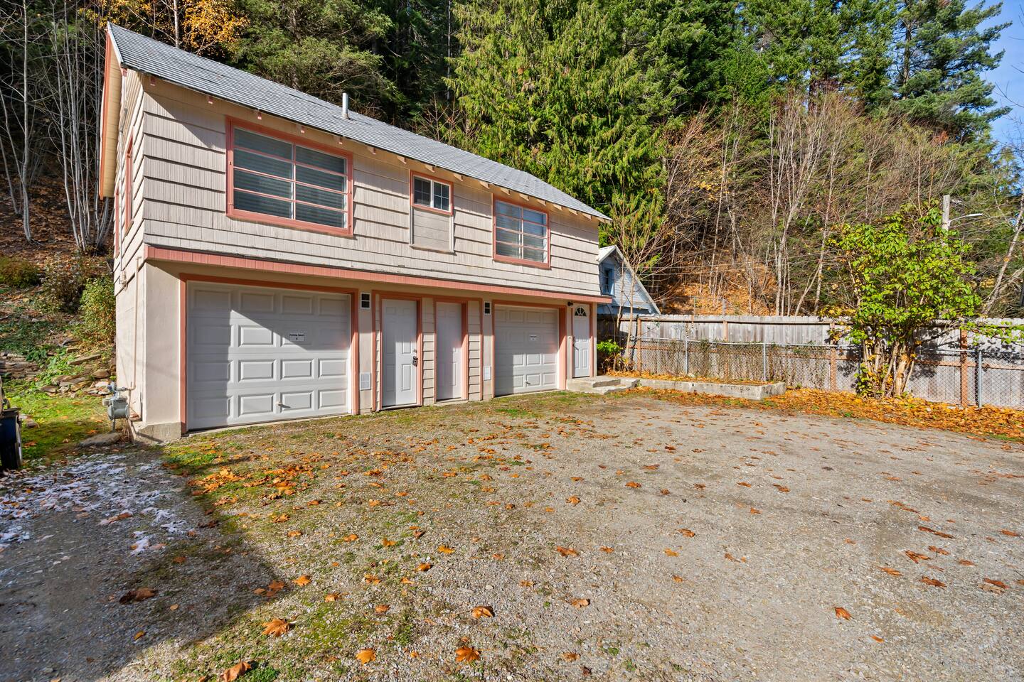 The main house boasts a primary bedroom upstairs with a king bed and attached full bathroom. Another bedroom upstairs offers a queen over queen bunk bed, and there are 2 sleeper sofas in the upstairs living room. With 3 full bathrooms (2 upstairs, 1 downstairs), there won't be any bathroom line-ups in the morning! The back apartment features a queen bed and 2 twin beds upstairs, along with a sleeper sofa and 1 bathroom. After a day of adventure, unwind in one of the 2 living rooms or gather around the dining table seating 10 for a home-cooked meal. For those needing to work, there's a designated workspace with a monitor and keyboard. Ample storage space is available for gear, with garage access for ATV, 4-wheelers, or snowmobiles. Bike racks and ski/snowboard racks are also provided. Laundry facilities include washers and dryers in the spacious laundry room, with the apartment also having access to a washer and dryer in the garage.