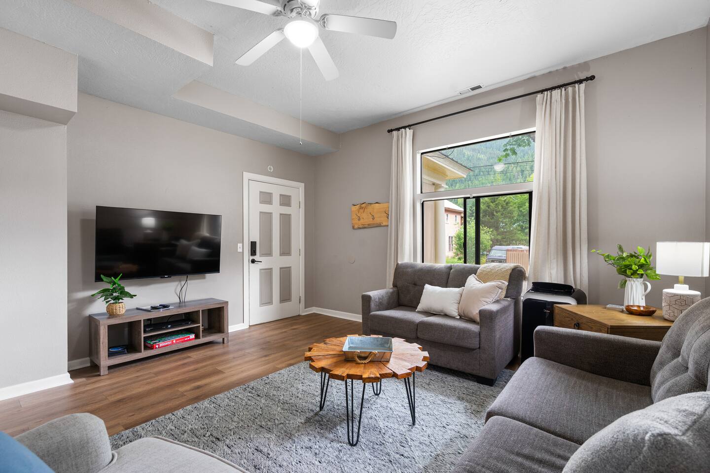🏡 Historic Wallace Home – Main-Level Unit • Lofty 9-foot ceilings and historic charm ✨ • Modern comforts for a relaxing stay 🛋️ • Short walk to 🌳 parks and 🏘️ Downtown Wallace • Ideal blend of nostalgia and convenience 🕰️