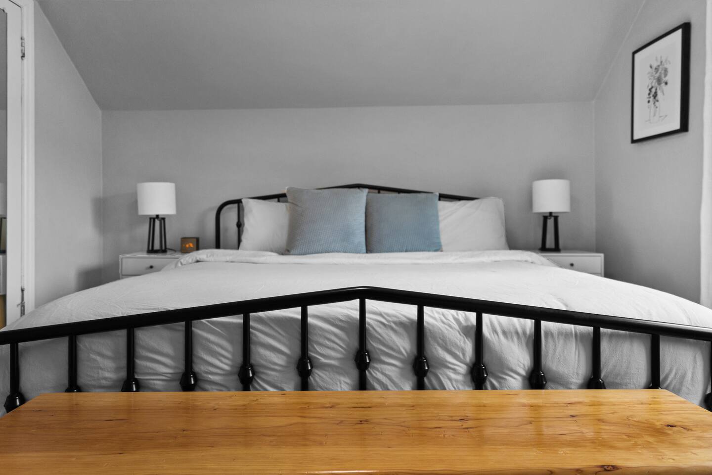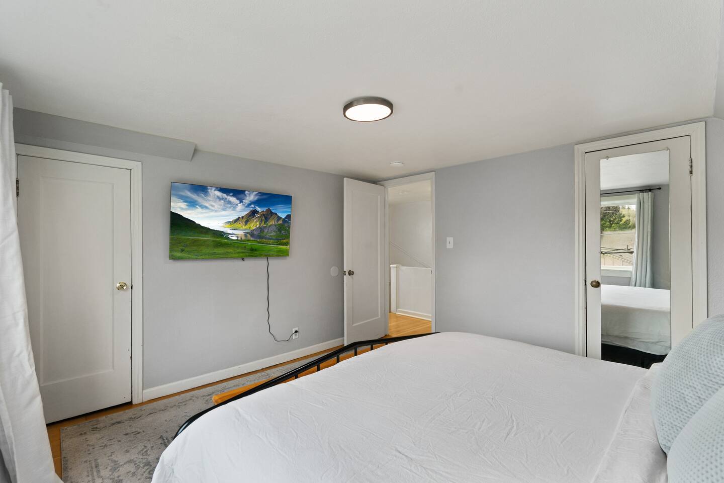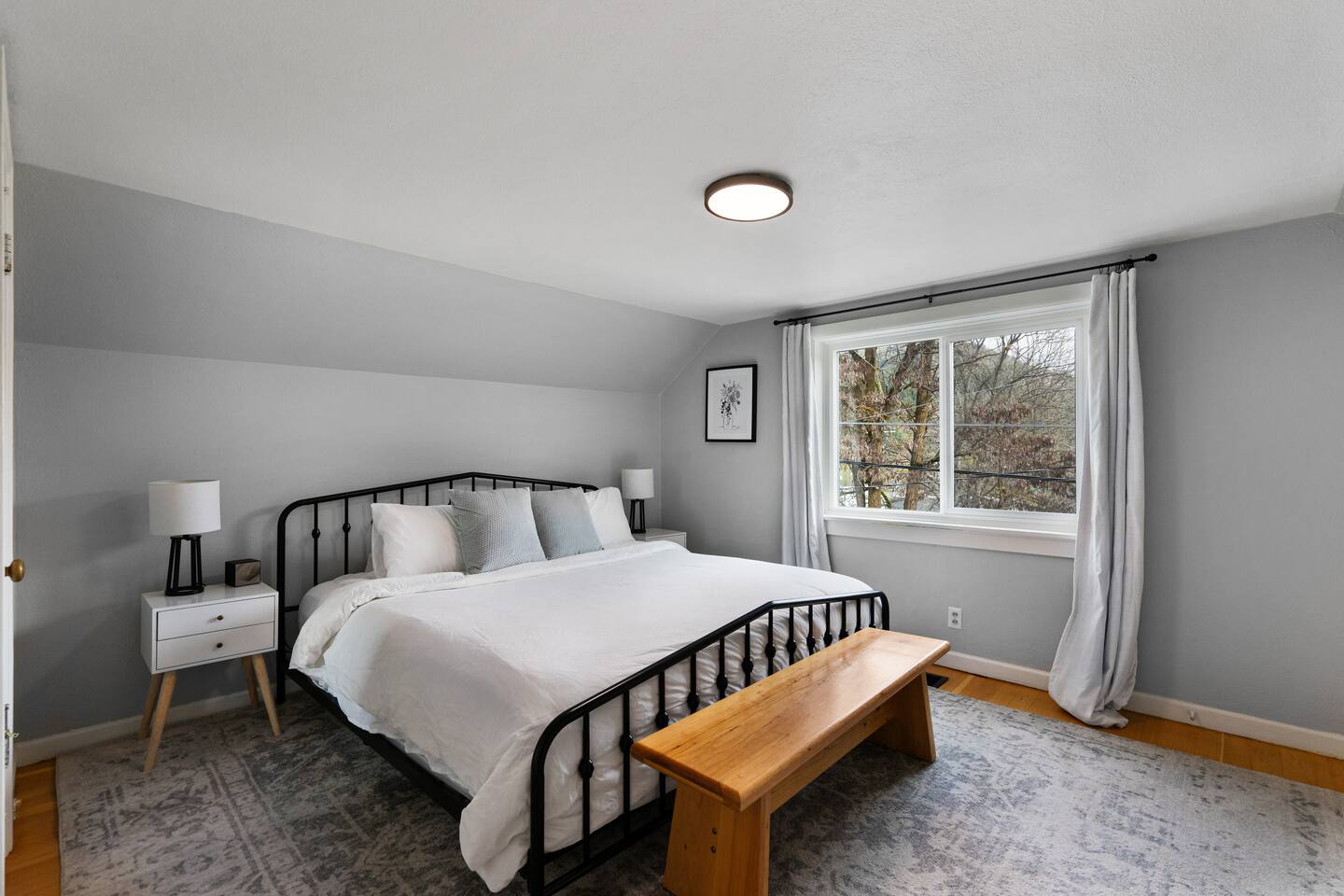 Step into a spacious retreat featuring two cozy king-sized beds upstairs, alongside the full bathroom. Downstairs, you'll find the third bedroom, living spaces, and a convenient half bathroom.