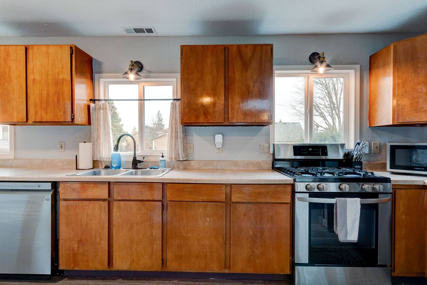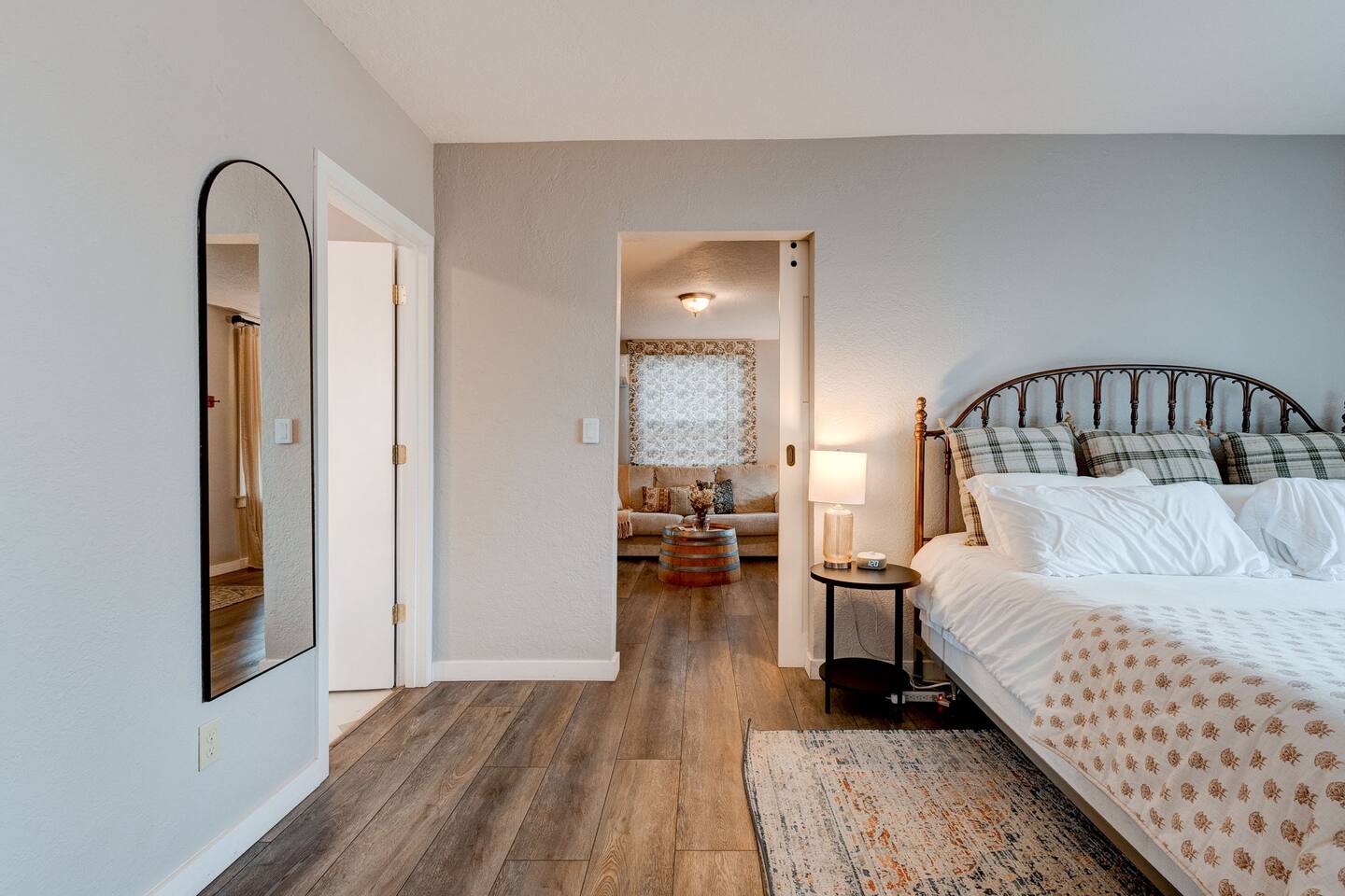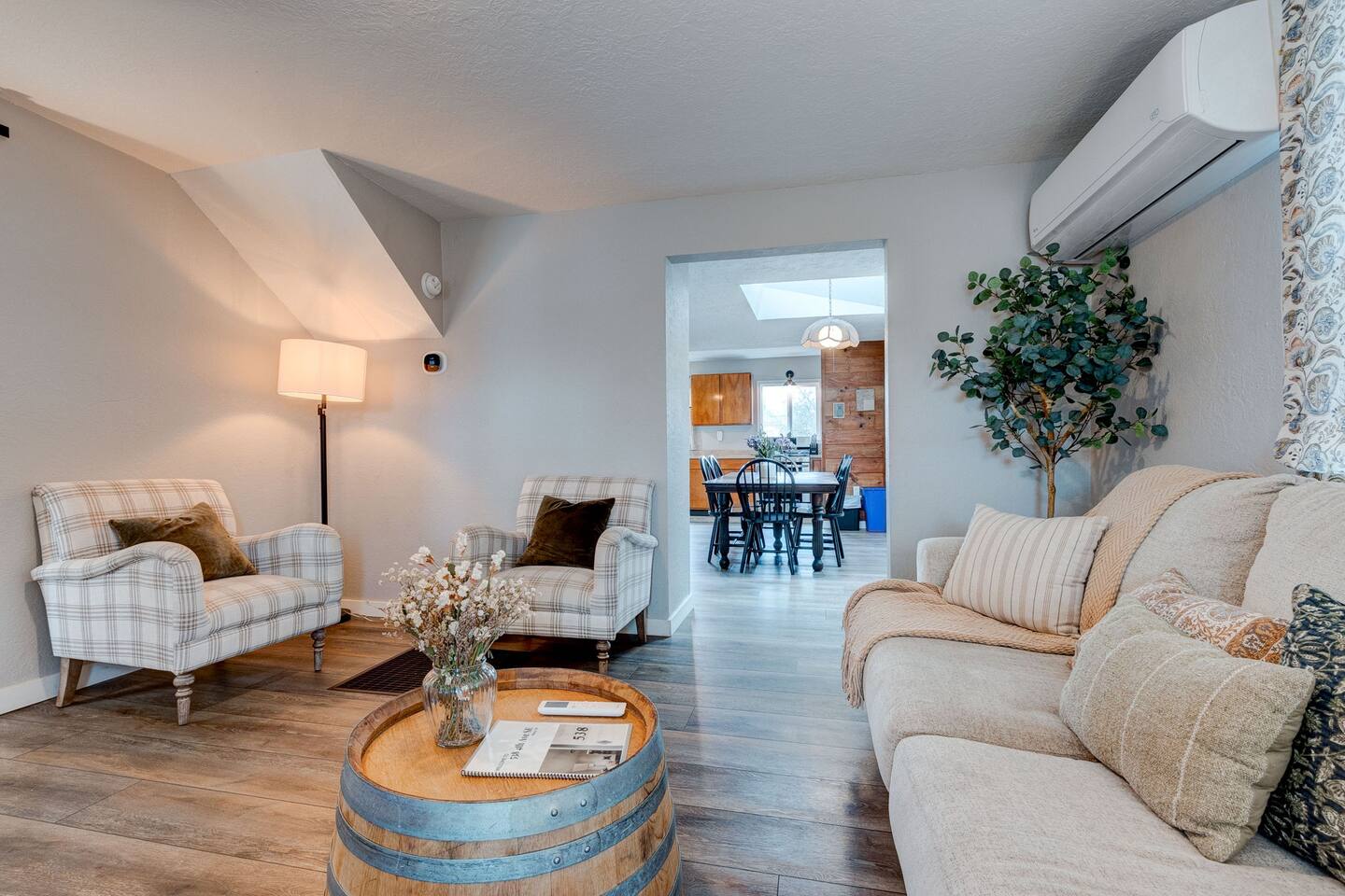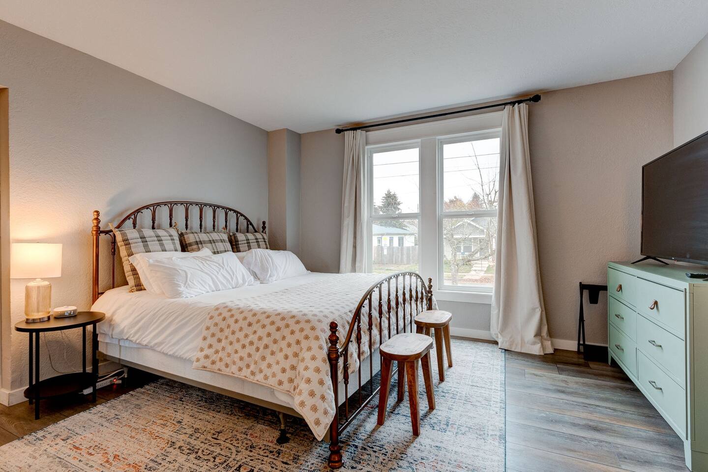 Beautifully renovated 1900s historic home in Albany, Oregon, offering modern amenities alongside classic charm. Sleep soundly in a comfy king bed, two queens, and two twins. Enjoy a large master bedroom, toys for kids, a small desk, and a cozy living room. Conveniently located near downtown Albany, 4 mins from the hospital, and 20 mins from Corvallis